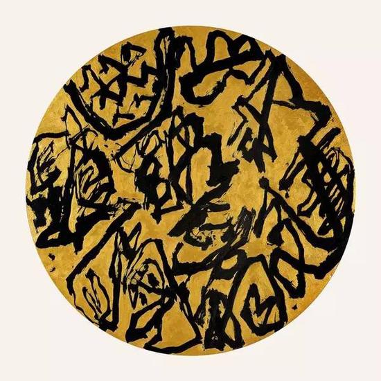《冰连溪谷祠锁烟》, 2016,墨 丙烯 油画布,直径:120cm