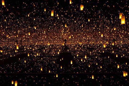 “我一直对镜子所映照的神秘感很有兴趣。”草间弥生表示,在她的镜屋里,人们可以看见自己是个被照映在广阔空间的个体,同时也会感受到自己在另个世界中被修复。