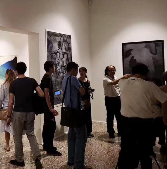 开幕式现场艺术家讲解作品威尼斯国际展览机构We Exhibit Srl和意大利威尼斯著名的文化艺术基金会Fondazine Querini Stampalia共同发起了2018威尼斯亚洲文化艺术节,该项目的邀请艺术展览之一:此刻-蔡广斌水墨艺术展已于7月21日下午16点圆满开幕,该展得到了威尼斯市政府及上海华府艺术中心大力支持,将持续至2018年9月20日。展览在博物馆三层当代艺术展厅展出,开幕当天嘉宾云集,奎里尼斯坦帕利亚基金会博物馆负责人及其它美术馆长、基金会主席、策展人、画廊主及收藏家等济济一堂,现场气氛十分热烈。嘉宾们对当下中国当代水墨艺术的著名艺术家蔡广斌作品表现出极大的兴趣。本次展览的策展人中国画院副院长张晓凌及艺术家蔡广斌也到场和观众一同解说分享作品。展出作品涵盖艺术家近几年的70余幅当代水墨代表性作品。