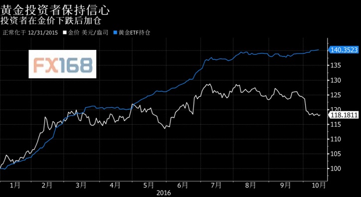2016年上半年金价曾累计上涨25%,因美联储年内加息预期降温,且英国6月公投脱欧引发不确定性升温。尽管近期金价有所回落,但投资需求仍然强劲。数据显示,截止上周五(10月14日).全球黄金ETF持仓在2051吨,为2013年6月来最高水平。
