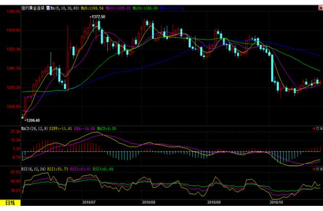 汇通网10月28日讯——美国COMEX 12月黄金期货电子盘价格周四(10月27日)收盘上涨2.60美元,涨幅0.13%,报1269.20美元/盎司,金价周四变动不大,受美元保持强劲压制,市场在等待预期美联储加息时机的更多迹象。