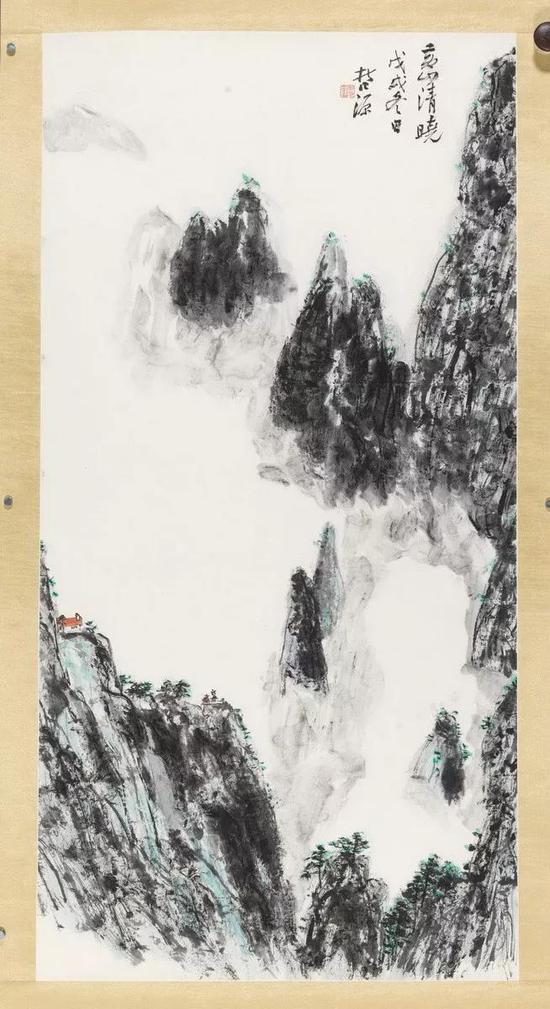陈哲源画风浑朴精致,清新灵奇。笔墨内敛,而精神外溢。作品的创作始终没有背离两个基本原则,那就是笔墨和师造化的结合。此幅作品以黄山奇峰为题材,画面不拘峰石之形似,而求整幅气韵的统一协调,笔下墨松苍劲有力,气息浓郁。